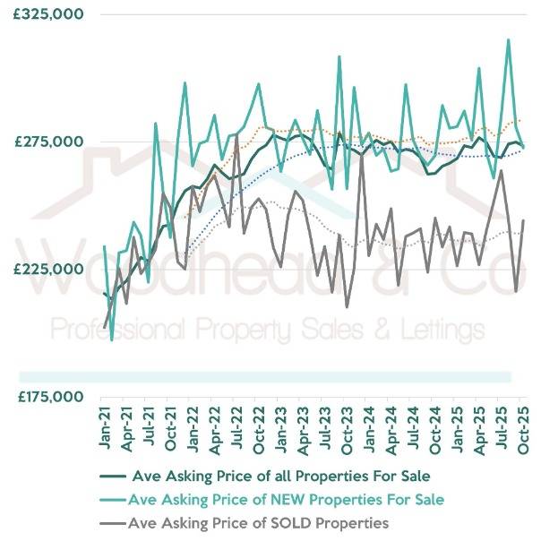 Wellingborough’s average asking price in October stood at £273,428, down just 0.6 % month-on-month but still 4.1 % higher than a year ago. The average sold price jumped 12.8 % month-on-month to £244,186, narrowing the gap between asking and achieved values to 12 % (around £29,000).